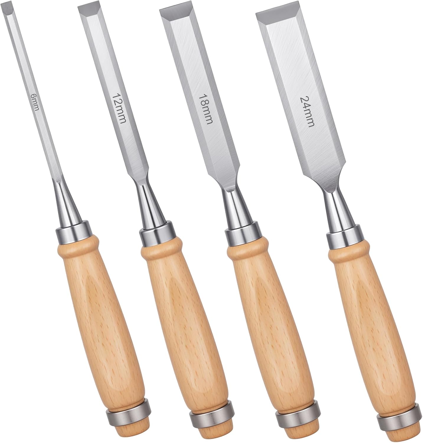 4 Pcs Wood Chisel Set CRV60 Steel Bevel Sharp Edge Bench Chisels with Safety Caps for Woodworking and DIY Projects